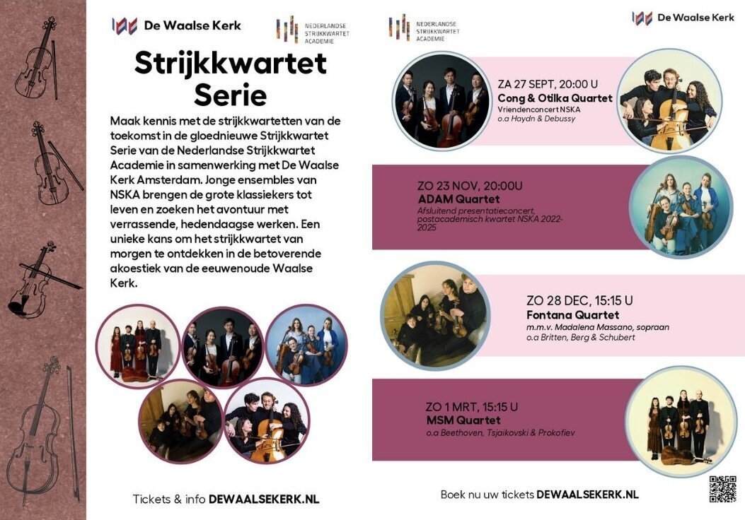 In de concertagenda treft u weer veel bijzondere concerten aan, waaronder het festival September Me van het Ragazze Quartet, alumni van NSKA. Van 25 t/m 28 september a.s.: zie September-me-Festival